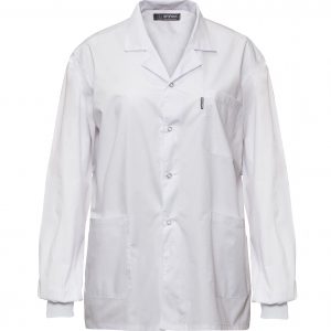 5% פוליאסטר 35% כותנה, 130 גר תיקתקים תפורים בשינה נסתרת. 3 כיסים פנימיים. מנג’ט אלסטי בסיומת השרוול. מתאים במיוחד לתעשיות המזון . צבעים נוספים בייצור מיוחד לפי בחירה.